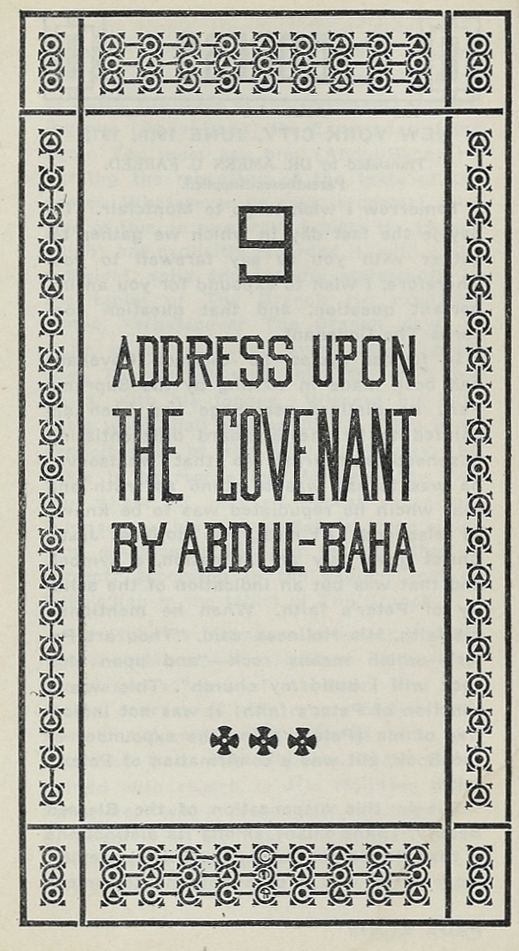 "Address upon the Covenant" by Abdul-Baha in text format: